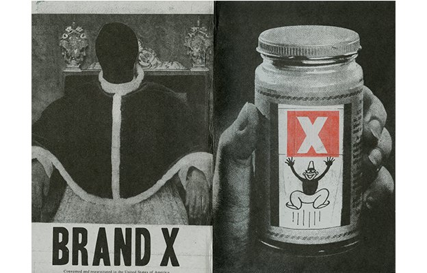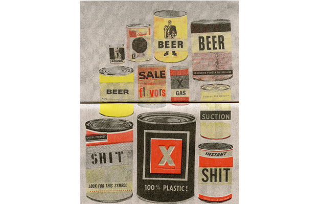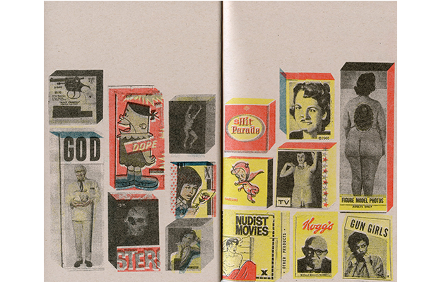 The first page of the zine states, “A Product of Shit”, a strong message that really sets the mood of what the viewer is going to devour. With moments of satire, there’s a strong political play printed on these thin newsprint pages. These series of collages make a curious consumer think twice of neat stacks of enclosed Americana goodies.