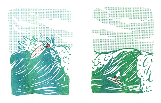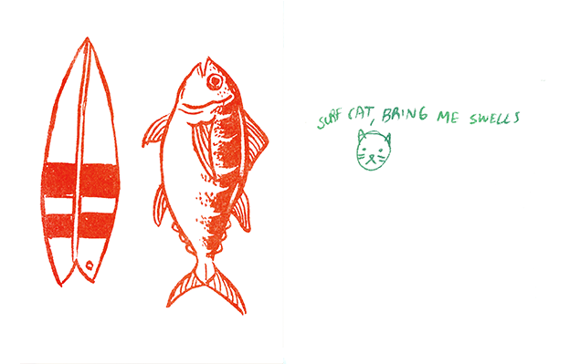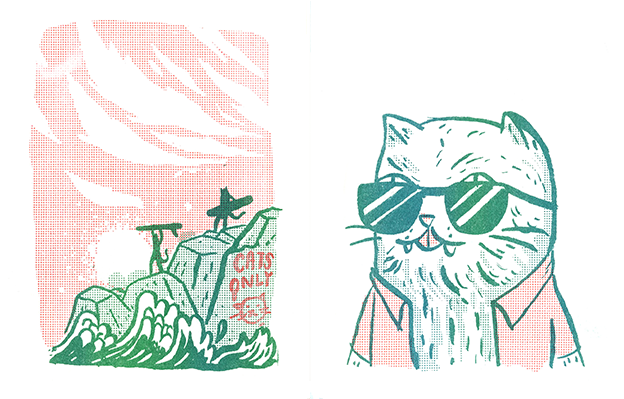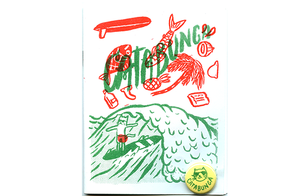 Summer is here just in time for this mini zine about surf cats shredding waves. This zine also comes with 1 inch pin.