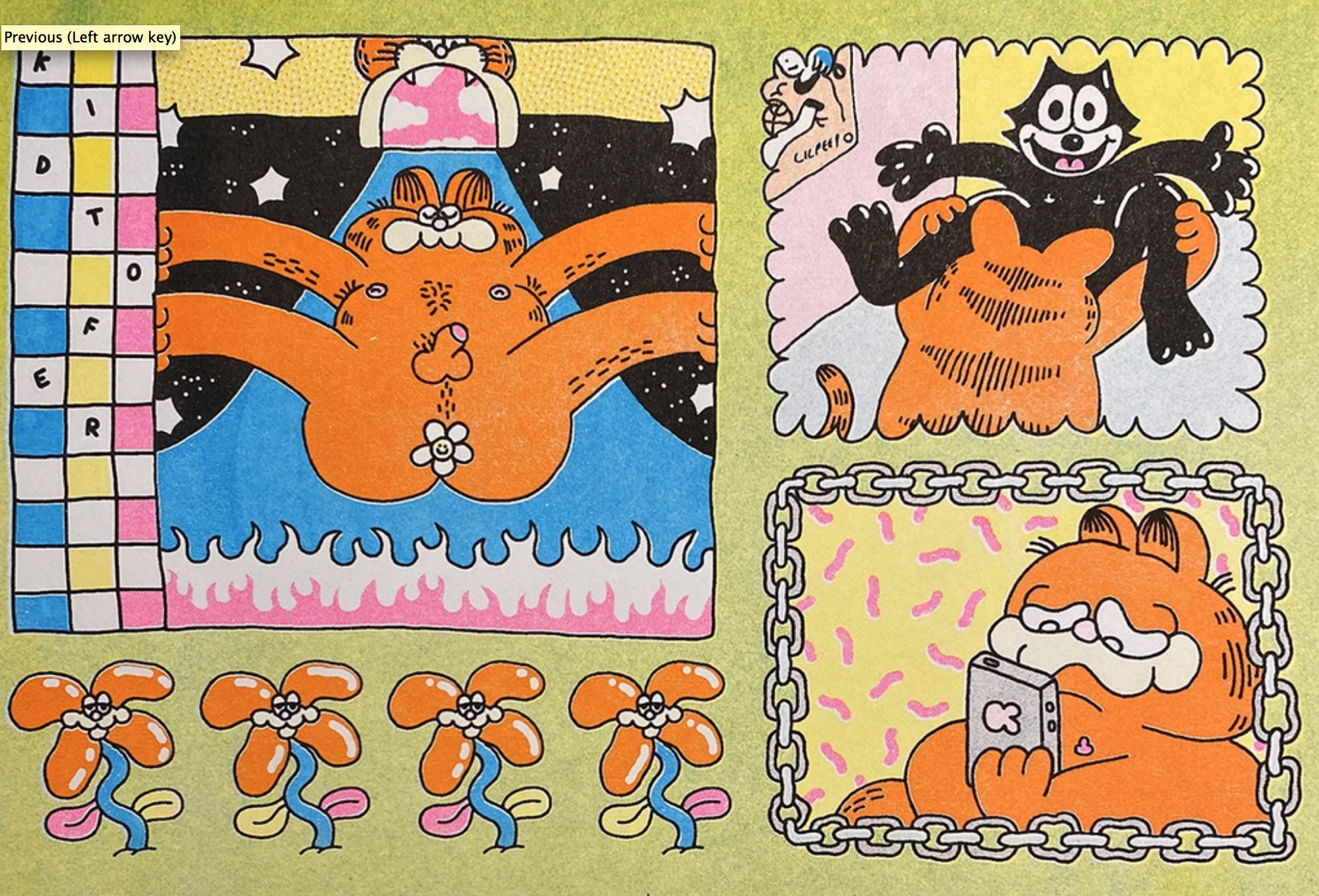 Fanzine filled with Garfield-induced comics, illustrations, tales, homages, nostalgia, trips, alternate universes and lasagna recipes by 64 contributors.