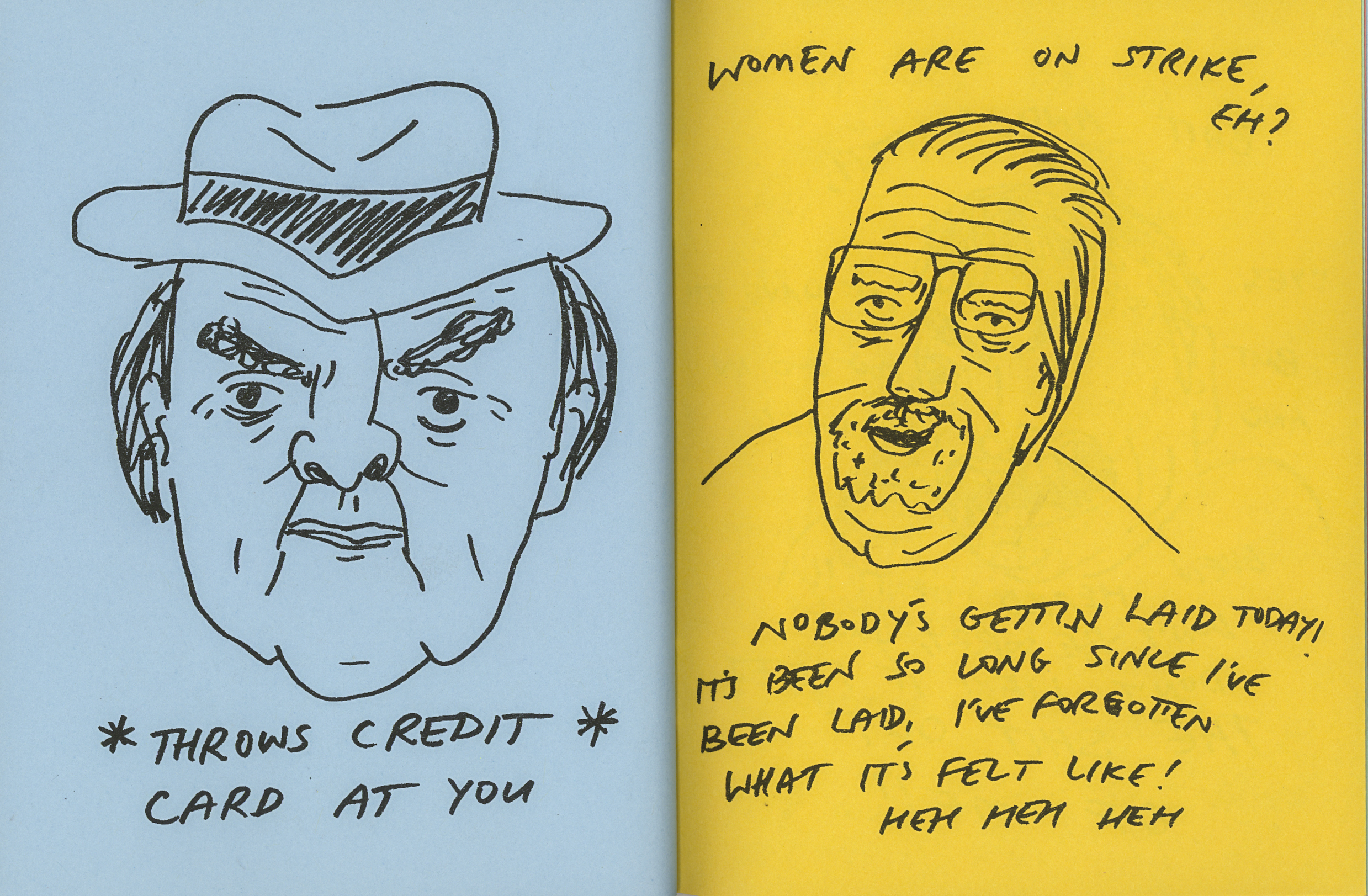 I started this series during my last few months at my job, an art supply store where I worked for over 6 years. My wife said I should make art about all the crazy things that happened there before I quit. I'd get home from a bad day at work and draw out whatever shitty thing someone said to me and then I'd forget about it.