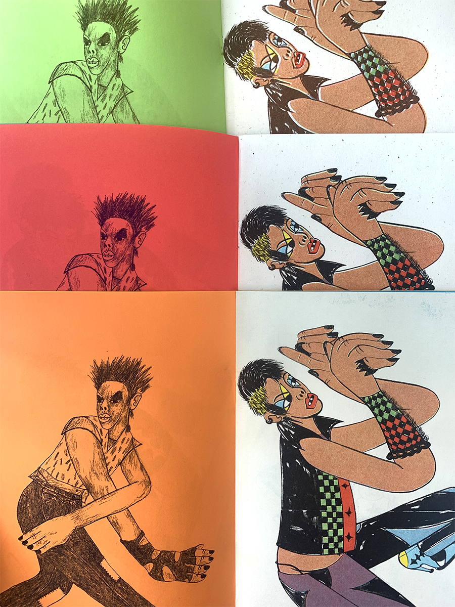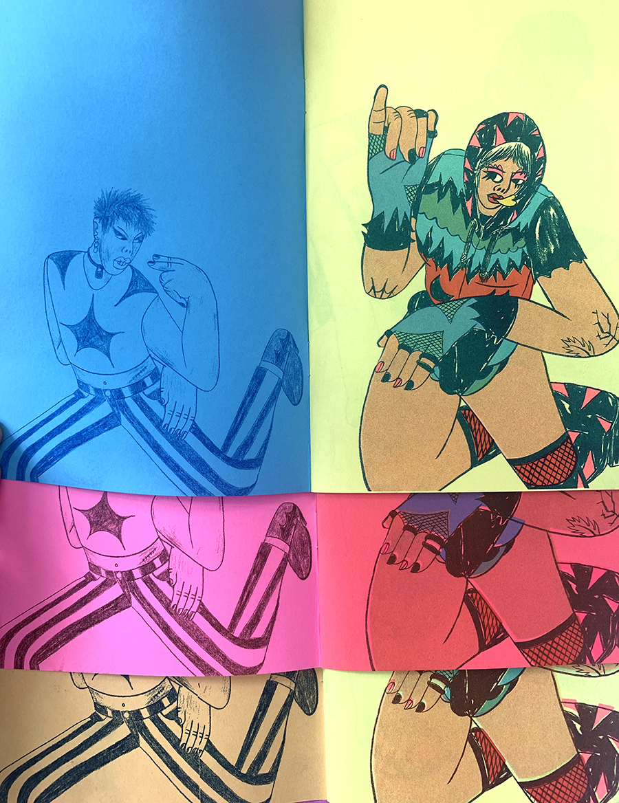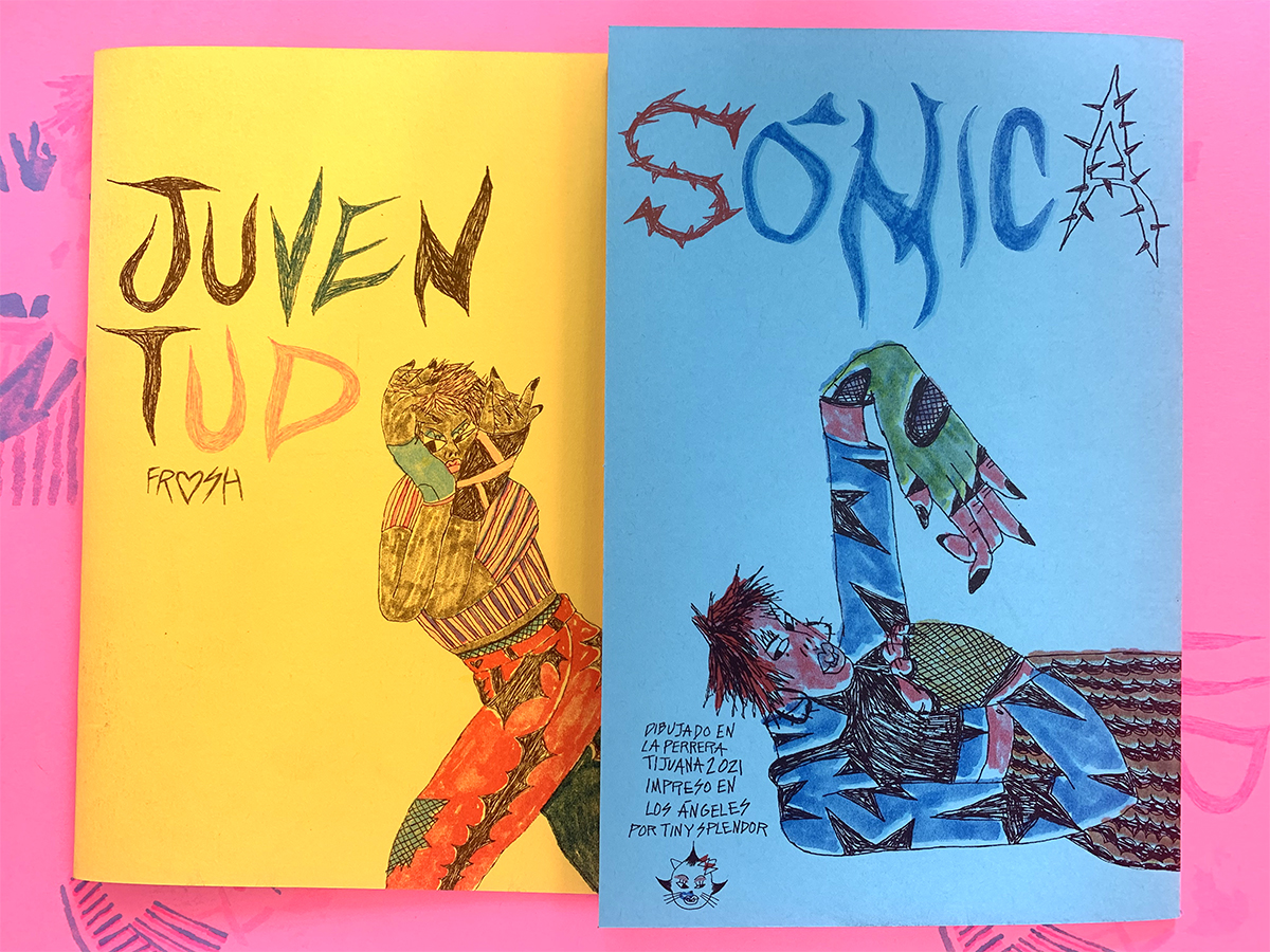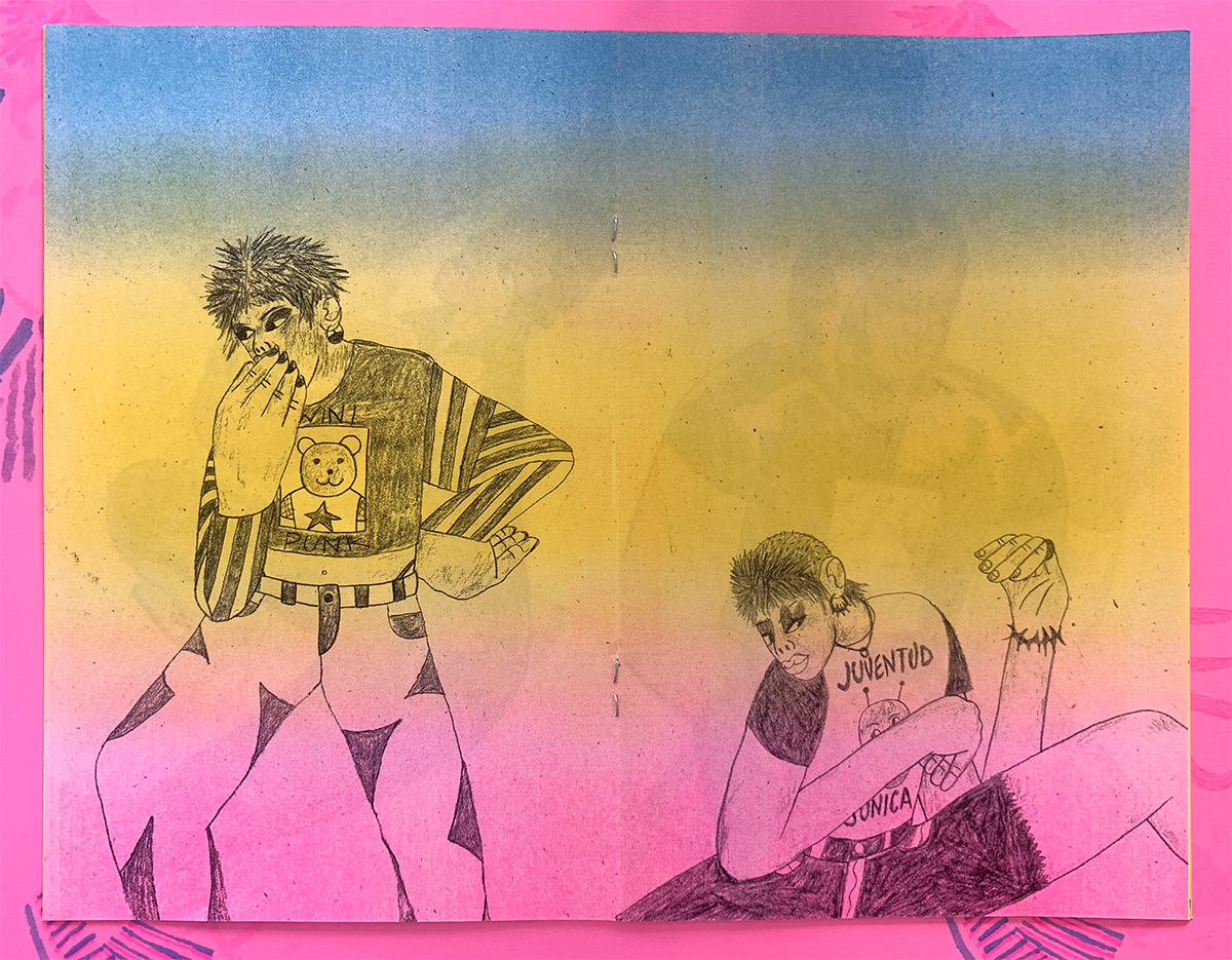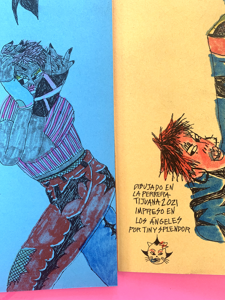 16-page, multi-color zine. Every zine are unique because each page alternates different colors and different color inks were used for the outline drawing. These drawings were done during an artist residency in Tijuana, B.C. Mexico.