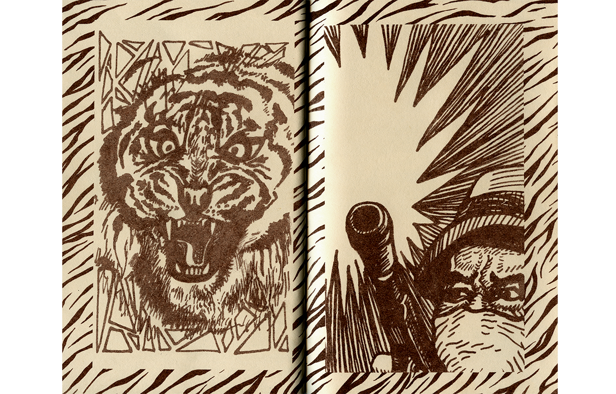 A silent revenge tale, a surreal tangle between a nameless visitor and a big cat.
